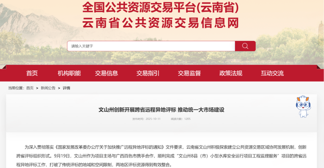 10月底,云南省人民政府印发《云南省打造一流营商环境促进经营主体提质增效三年行动计划(2025—2027年2.0版)》的通知,强调“积极融入全国统一大市场建设”、“深入推进要素市场化配置改革“、”持续整治招标投标领域违法违规问题”、“试行跨省域远程异地评标”等要求。