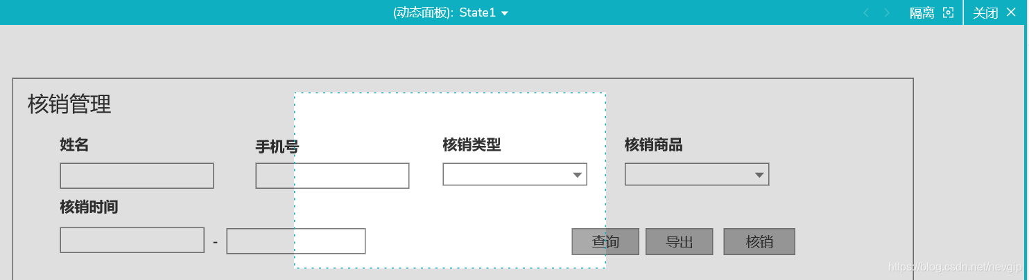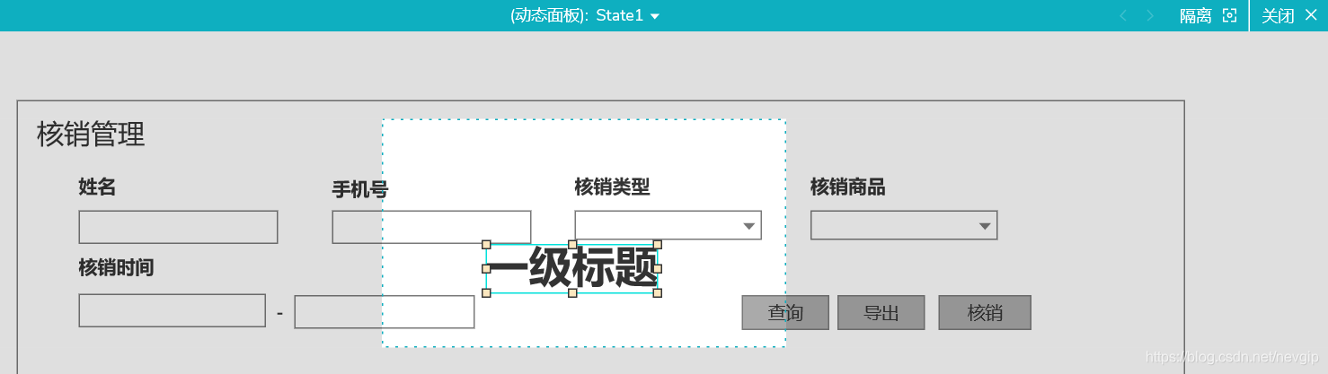 三、添加需要动态显示的元件,如果要实现弹窗效果,先拖动一个“矩形1”元件到动态面板上,大小与动态面板一致。