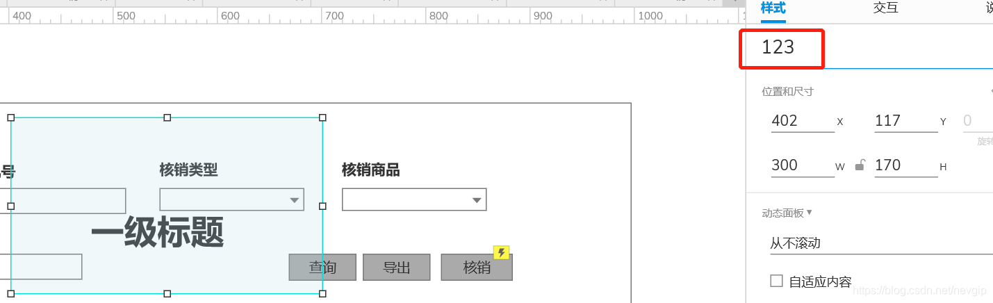 四、双击,退出动态面板的编辑模式。单击动态面板,命名,右键选择“隐藏”。