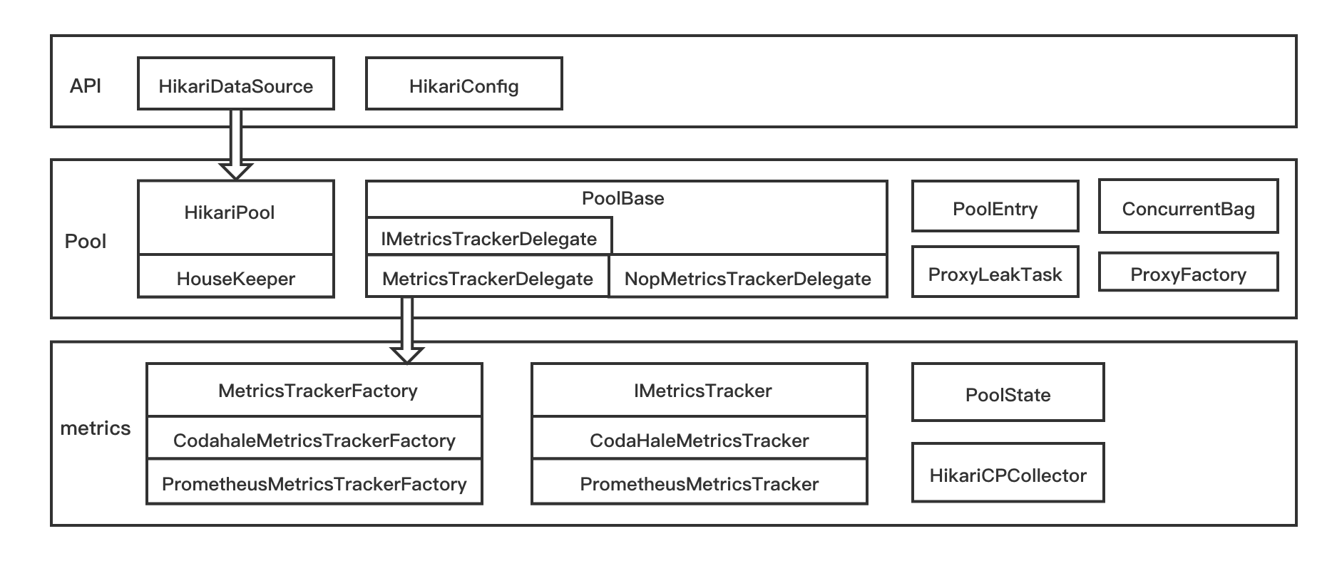 提供dropwizard和prometheus两种metrics, 顶层接口MetricsTrackerFactory