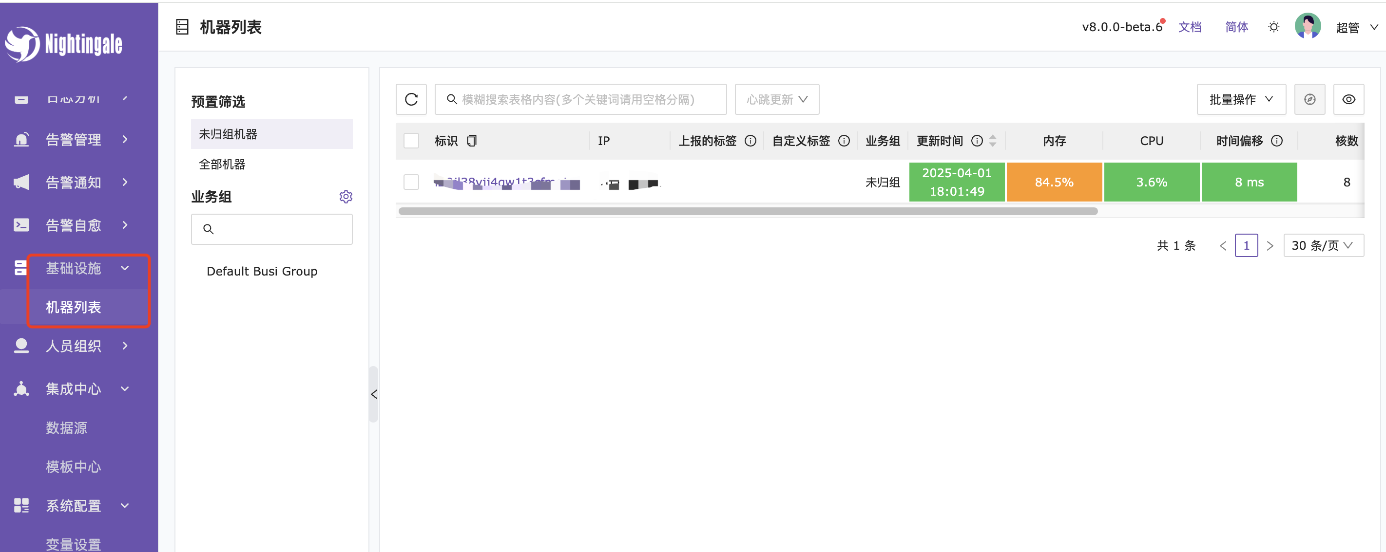 数据源配置成功后要想在时序指标->及时查询中查询到数据,需要配置采集器,在categraf配置文件(conf/config.toml)中添加如下代码。夜莺启动后使用默认账号登录:浏览器访问夜莺的端口,即 17000,默认用户是 root,密码是 root.2020。我自己在部署的时候有改动点,有改动点,有需求可以参考。基础设施->机器列表 存在采集器机器。