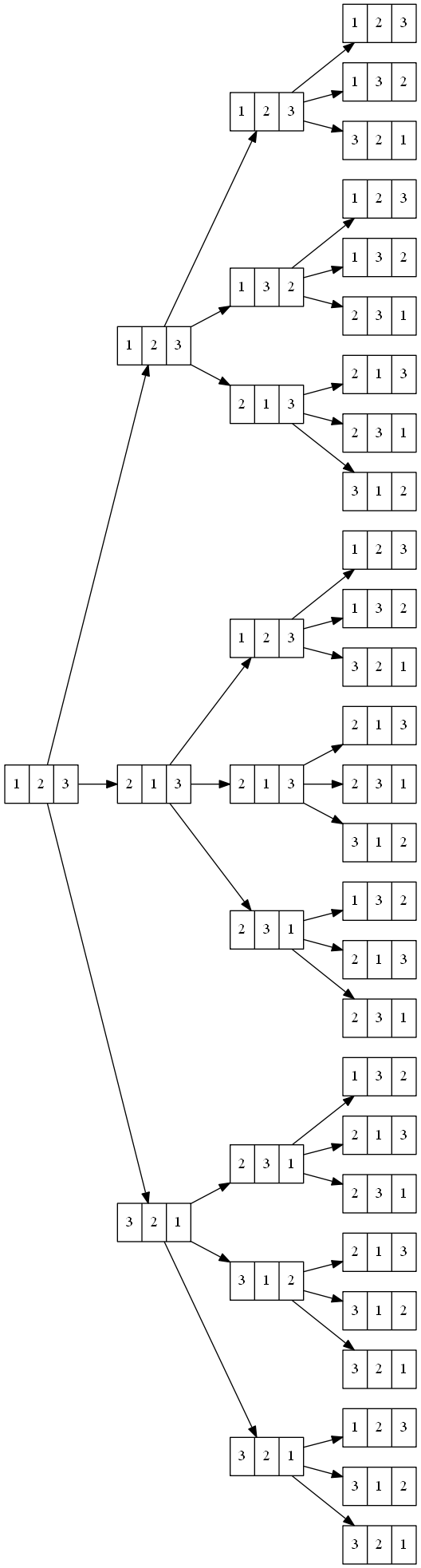 假设A=[1, 2, 3],那么分析第2,3行的for循环,有下面的产生链: