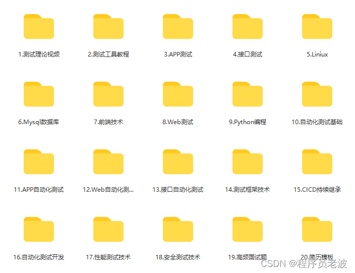 这些资料,对于【软件测试】的朋友来说应该是最全面最完整的备战仓库,这个仓库也陪伴上万个测试工程师们走过最艰难的路程,希望也能帮助到你!有需要的小伙伴可以点击下方小卡片领取