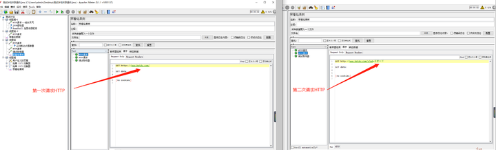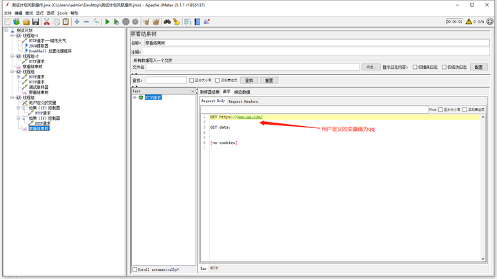 4.如果(If)控制器右键添加,取样器选择HTTP请求,分别访问http://www.baidu.com和http://qq.com。