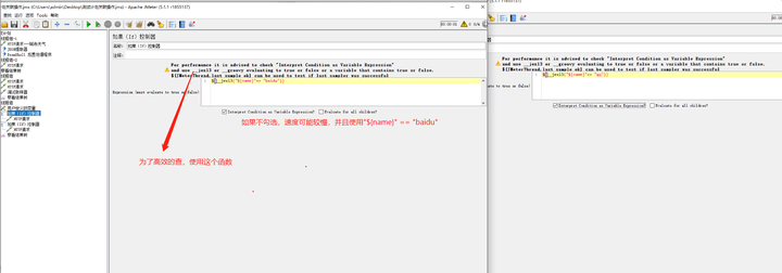 3.线程组右键添加,逻辑控制器选择如果(If)控制器,创建2个,使用函数__jexl3提高效率。