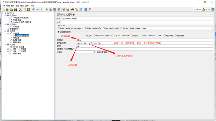2.线程组右键,取样器选择HTTP请求,创建2个,在第一个HTTP请求右键添加,后置处理器选择正则表达式提取器。进行编辑