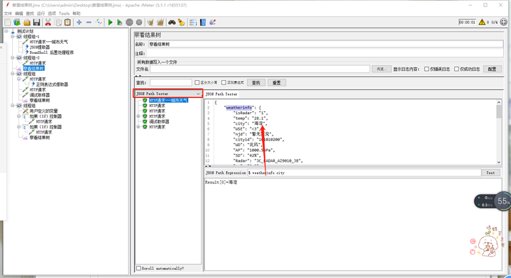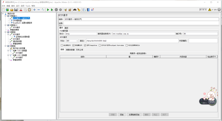 1.首先右键添加一个线程选择线程组,命名为线程组-1,添加取样器选择HTTP请求--城市天气