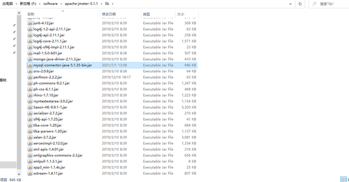 1,首先需要在F:\software\apache-jmeter-5.1.1\lib目录下安装mysql-connector-java-5.1.35-bin.jar。