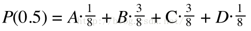根据贝塞尔曲线的对称性,不难想出J点在P(0.5)处,代入公式即可求得: