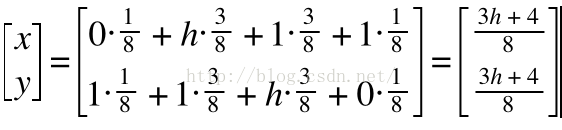 代入四个控制点坐标A(0, 1),B(h, 1),C(1, h)和D(1, 0),可以求解P(0.5)点坐标如下: