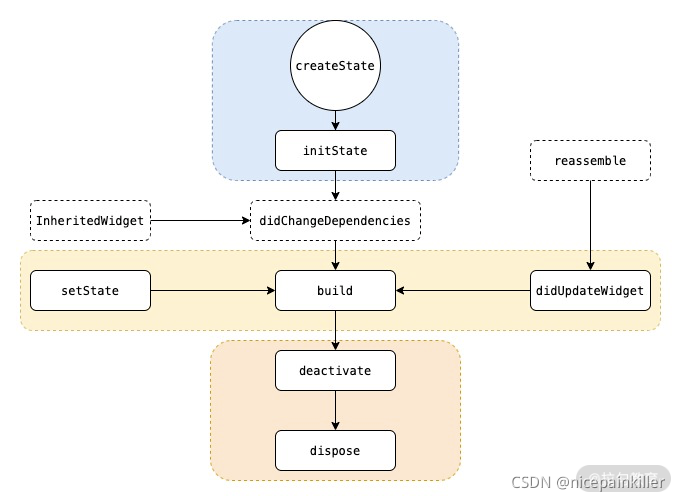 Flutter Widget什么周期主要讲解 StatefulWidget 的生命周期:应为无状态就两种;