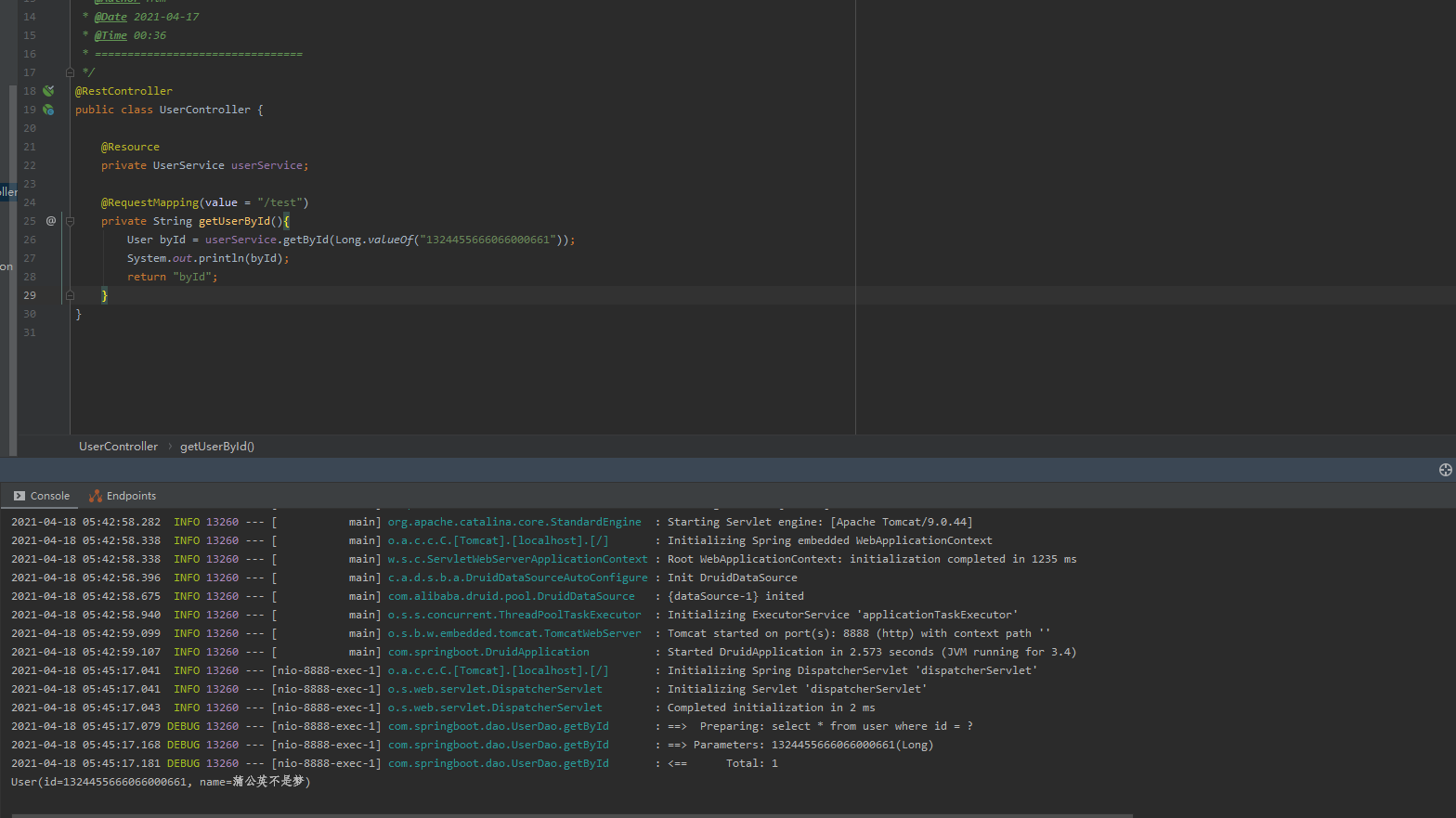 定义测试接口查询数据库: