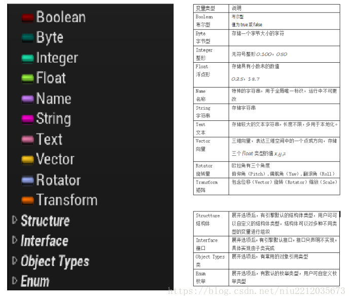 变量:存放一个值或引用世界中的一个Actor的属性,游戏中加载进去的任何游戏对象都是由不同类型的变量存储的。