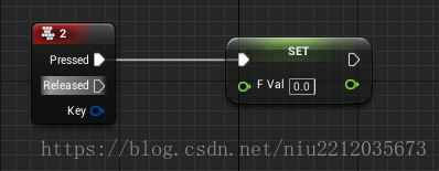 变量还可以在程序中设置,拖动变量fVal到事件图表中,点击Set fVal。创建出Set节点,创建事件”2”节点,连接到Set fVal,点击Compile编译。