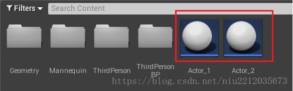 新建继承Actor的蓝图类,命名为Actor_1,复制一份,命名为Actor_2