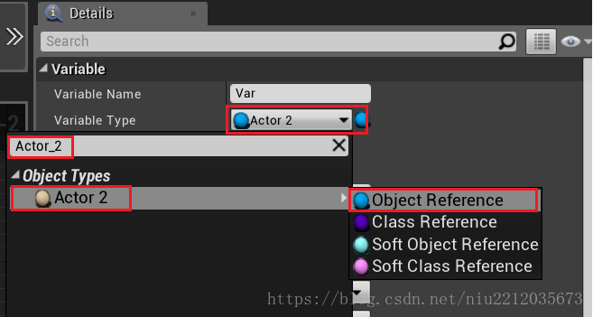 在Actor_1中新建变量Var,变量类型为Actor_2的引用