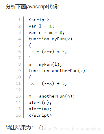 x= x++ +5 => x= 1 + 5=6; 先输出,再加;此时x是全局,变6