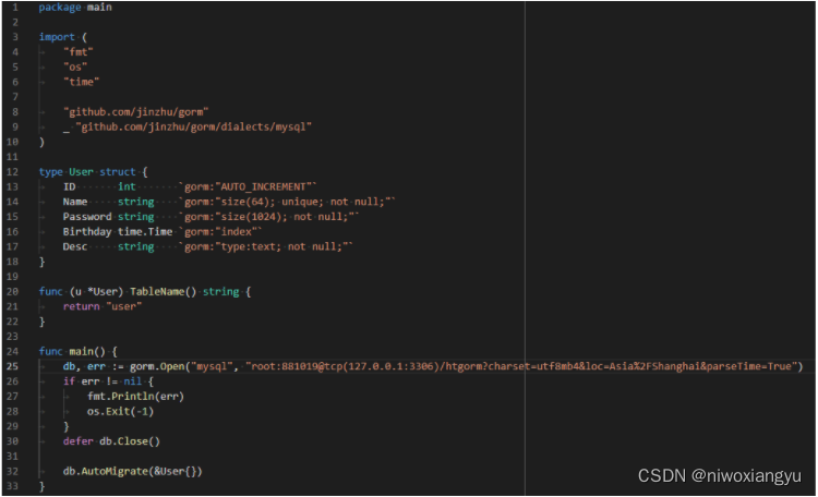 db, err := gorm.Open("mysql", "root:1234@tcp(192.168.204.130:3306)/testorm?charset=utf8mb4&parseTime=true&loc=PRC")