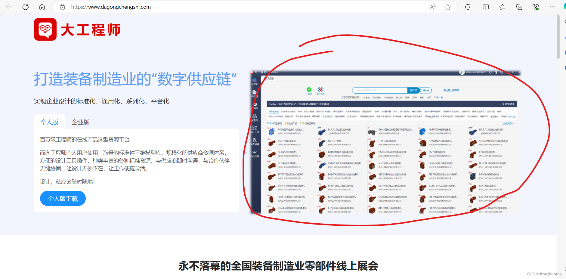 这里基于自己粗浅的工作经历,在solidworks画图时,设计中经常会需要用到一些外购件,除了螺钉等标准件外,还有一些如把手等外购件,那之前我们会有公司自己内部的toolbox库用于选择3D模型(貌似一般公司都不推荐使用solidworks自带的toolbox库),如果不在公司内部库内的外购件模型,除了去常用的网站(怡合达、米思米、或者自己有意向公司的网站如亚德客、西克等等),也可以去今日制造插件进行下载,不过貌似今年今日制造没有更新还是怎么的,不支持过多复杂搜索。跳转到了客户端大工程师,可以直接搜索某些外购件,方便快速查找,然后下载3D。截图如下: