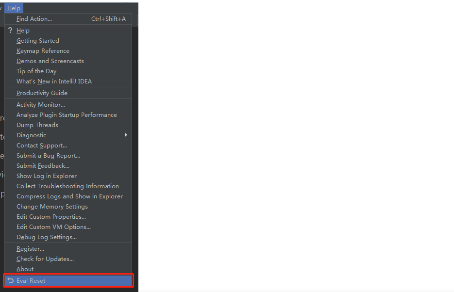Help-->Eval Reset,点击右下角Reset,弹出IDE将在重置后重启,是否重置,点击YES。