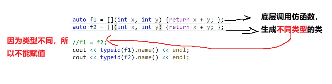 std::function<int(int, int)> func3 = [](const int a, const int b) { return a + b; };