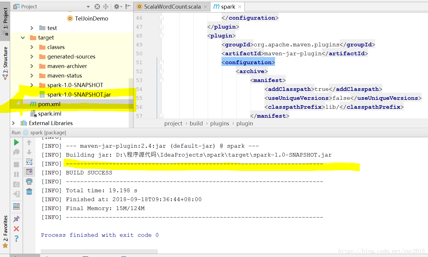 --class nuc.sw.test.ScalaWordCount 指定类名全路径