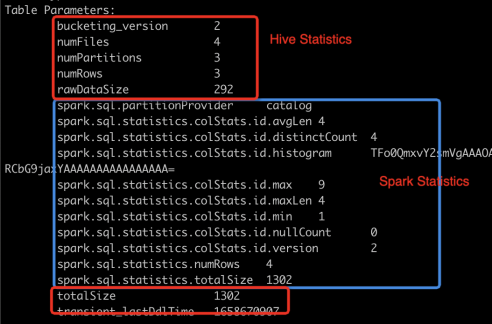 Spark自己定义了一套statistics key,这也意味着Spark引擎写入的statistics不会被其他引擎使用和共享,另外可以看出Spark对于statistics的写入相对于Hive要谨慎很多,在默认的配置下,Spark不会在数据写入时有效地更新statistics,意味着Hive Metastore里的统计信息不再能准确反映表的实际情况。