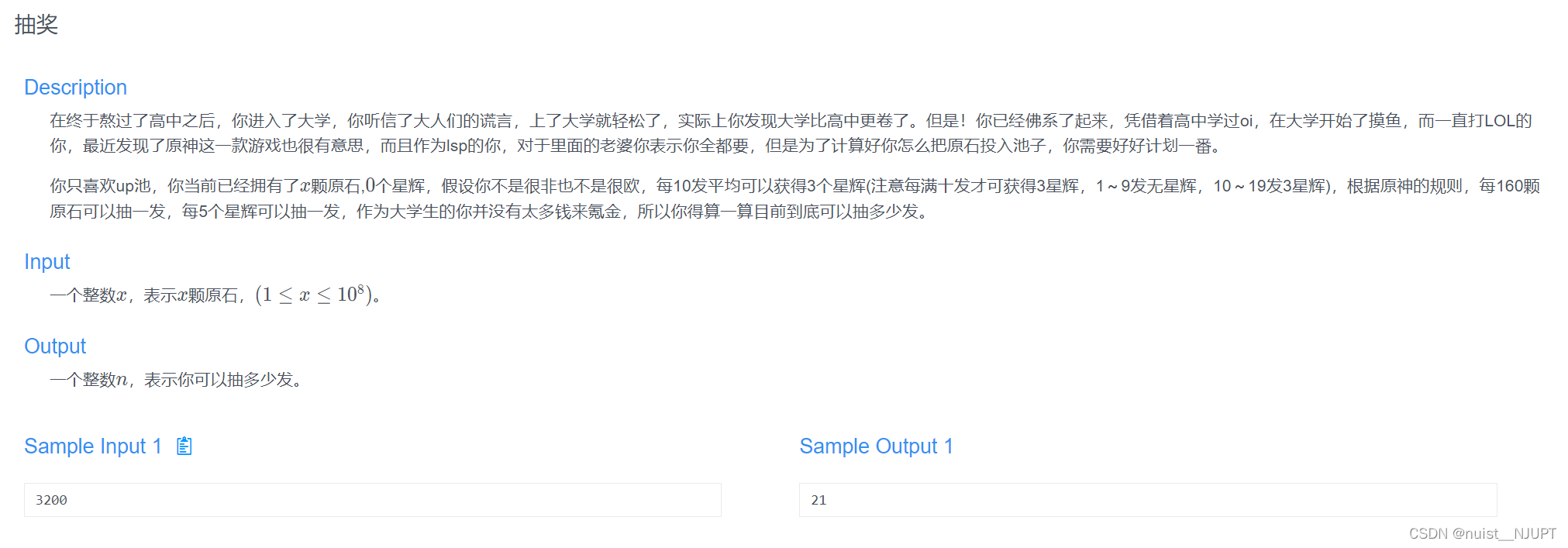 思路:逻辑题,需要实时记录当前的星辉数和剩余的发数,只要剩余的星辉数大于等于5,则可以兑换一次发数。AC代码如下: