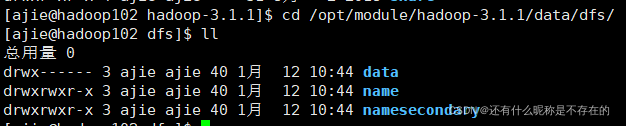 Hadoop集群启动没有Datanode 本人搭建的伪分布式集群,Hadoop集群启动没有Datanode,一开始以为是配置问题,检查了发现没什么问题,后来发现是Datanode与Namenode之间的ClusterID不一致导致的。可能造成的原因:频繁的格式化namenode环境:VMWARE+Centos7+Hadoop3.1.1解决:进入到你hadoop安装目录里面的/data/dfs文件夹中cd /opt/module/hadoop-3.1.1/data/dfs/这个有三个文件夹,分别是namenode,datanod