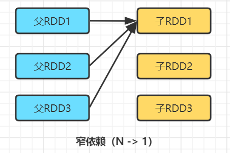- 窄依赖就是一个父分区对应一个子分区(错误)