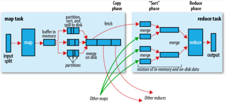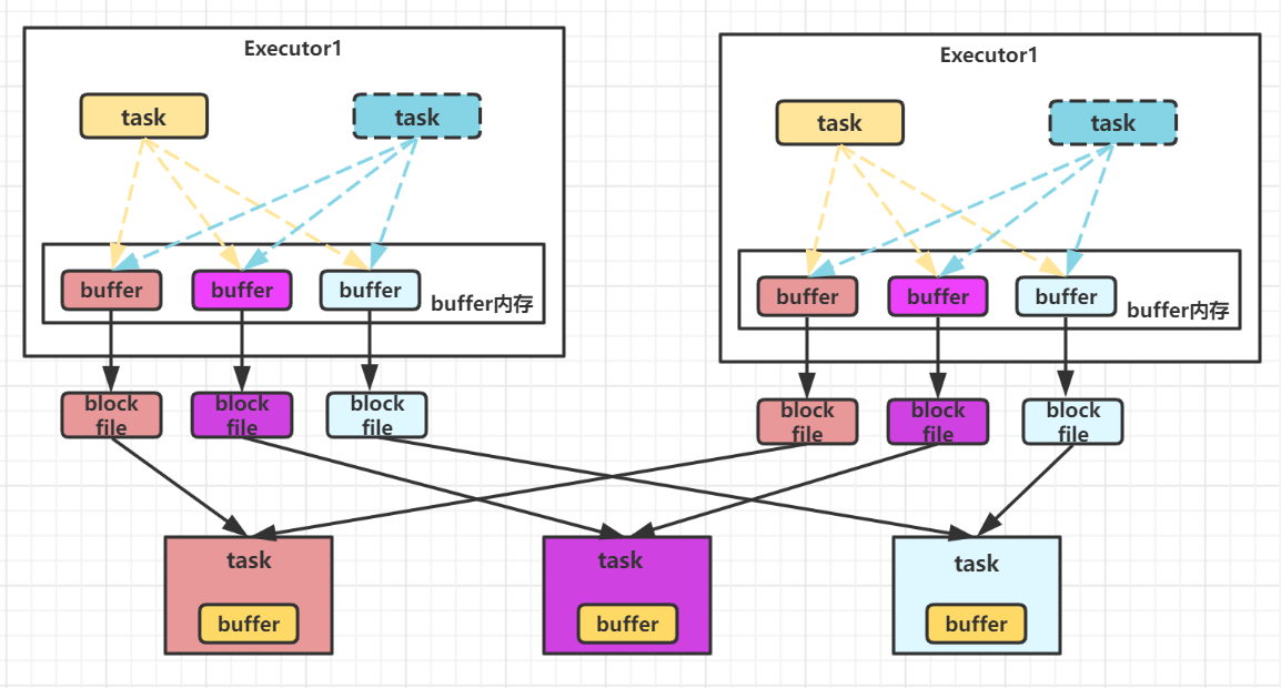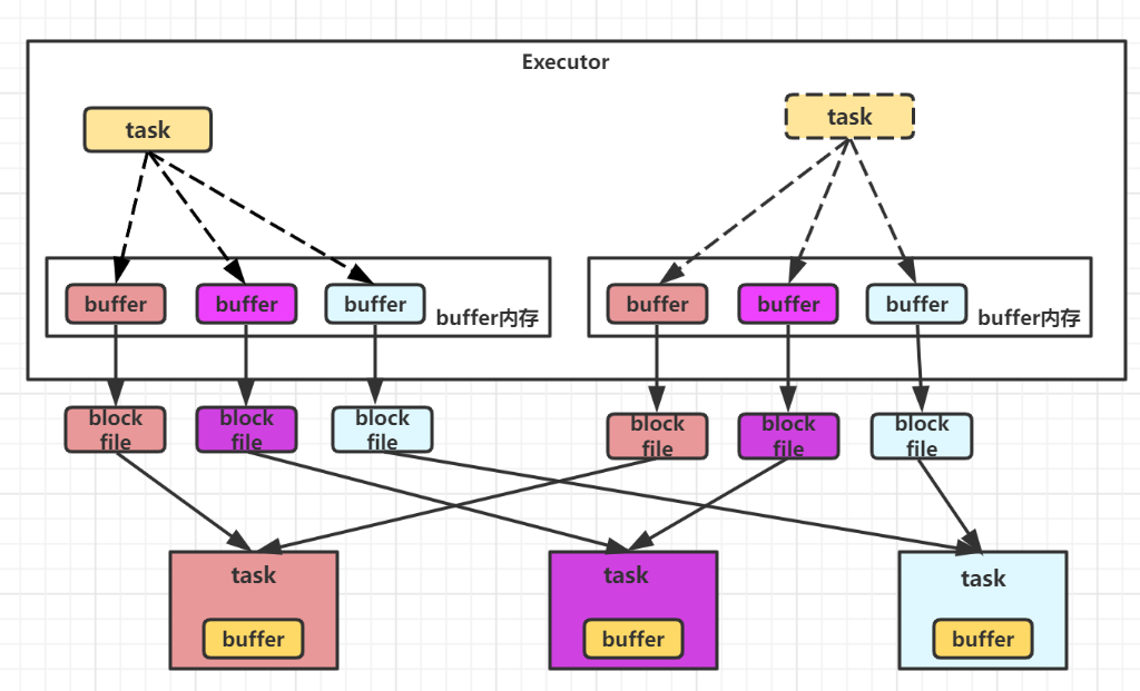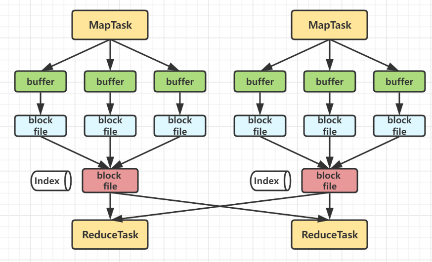 - shuffle过程优化。和Mapreduce的shuffle过程中间文件频繁落盘不同,Spark对Shuffle机制进行了优化,降低中间文件的数量并保证内存优先。