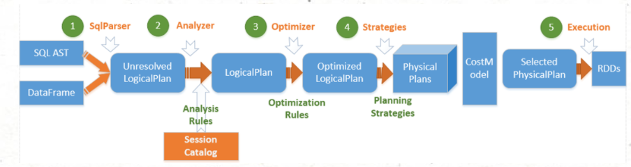 - 内存计算。Spark优先将数据加载到内存中,数据可以被快速处理,并可启用缓存。