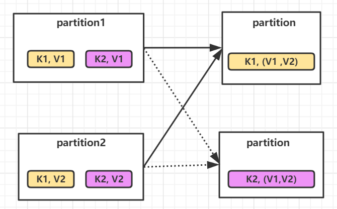 GroupByKey内部禁用CombineByKey算子,将分区内相同Key元素进行组合,不参与聚合计算。此过程会和ReduceByKey一致均会产生Shuffle过程,但是ReduceByKey存在本地预聚合,效率高于GroupByKey。