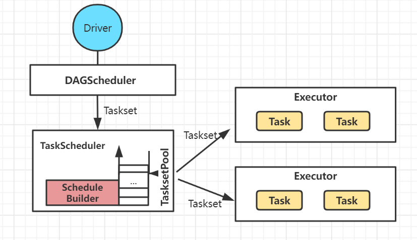 TaskScheduler负责Spark中的task任务调度工作。TaskScheduler内部使用TasksetPool调度池机制存放task任务。TasksetPool分为FIFO(先进先出调度)和FAIR(公平调度)。