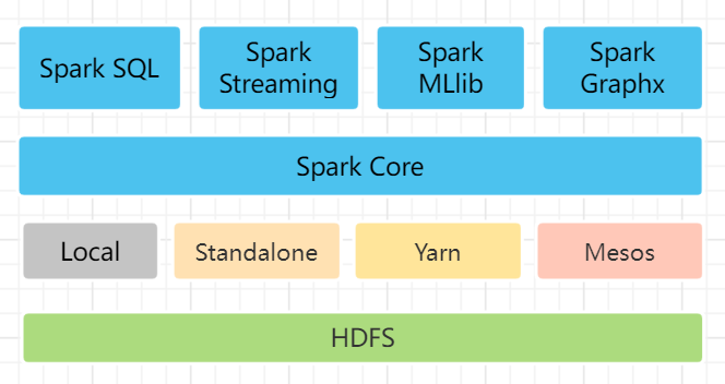 Spark体系包含Spark Core、Spark SQL、Spark Streaming、Spark MLlib及 Spark Graphx。其中Spark Core为核心组件,提供RDD计算模型。在其基础上的众组件分别提供查询分析、实时计算、机器学、图计算等功能。