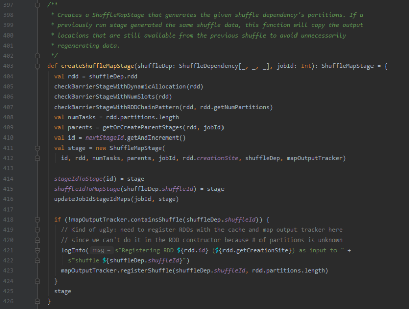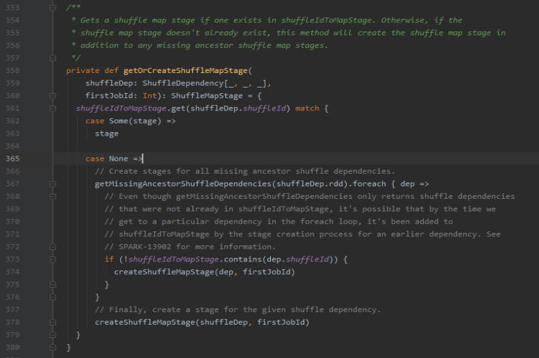 shuffleId获取当前父shuffle RDD的shuffleStage,如果当前shuffleStage已经存在,则直接返回 -
