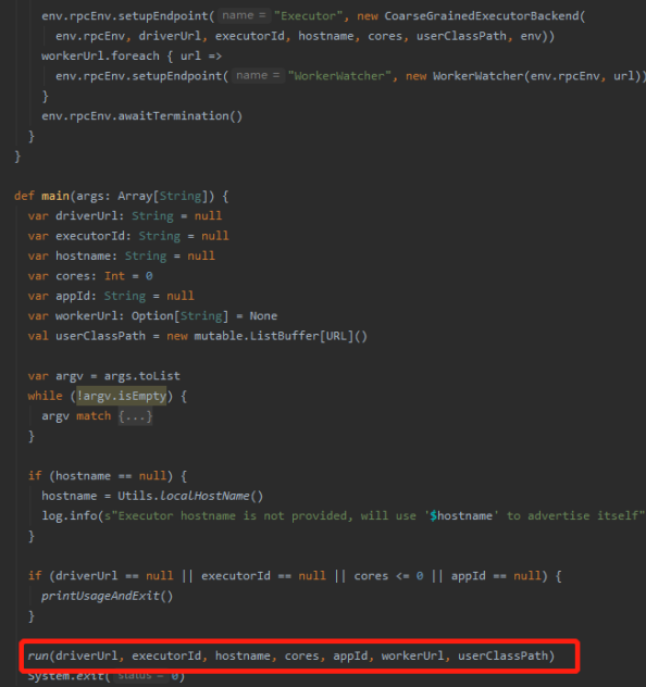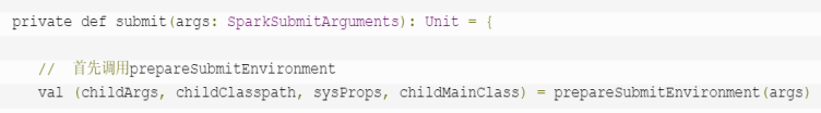跟踪RunMain方法,首先调用的是prepareSubmitEnvironment()函数。进行后续解析参数,获取Args、Classpath、SparkConf和MainClass工作