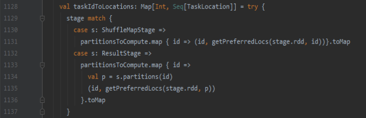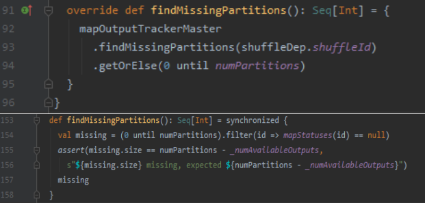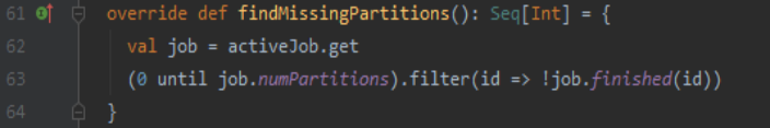 findMissingpartitions方法查找MapOutputTracker中需要参与计算的该stage的partitionIds