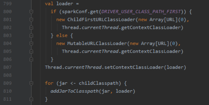 1) 获取当前执行线程类加载器ClassLoader并加载Jar包 注意: 需要判断spark加载用户提交的jar和spark自身Jar的优先级(DRIVER_USER_CLASS_PATH_FIRST)