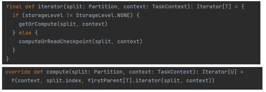 3)ResultTask则直接反序列化代码,并执行func自定义方法,将结果传到driver或者输出都调用RDD.iteralator()方法
