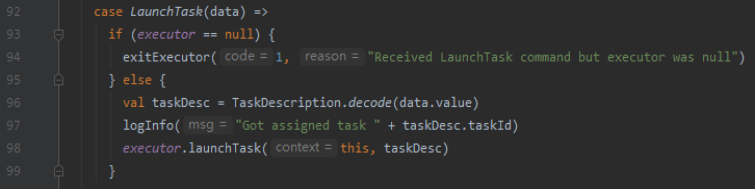 3)CoarseGrainedExecutorBackend接收请求,调用Executor执行launchTask任务调度