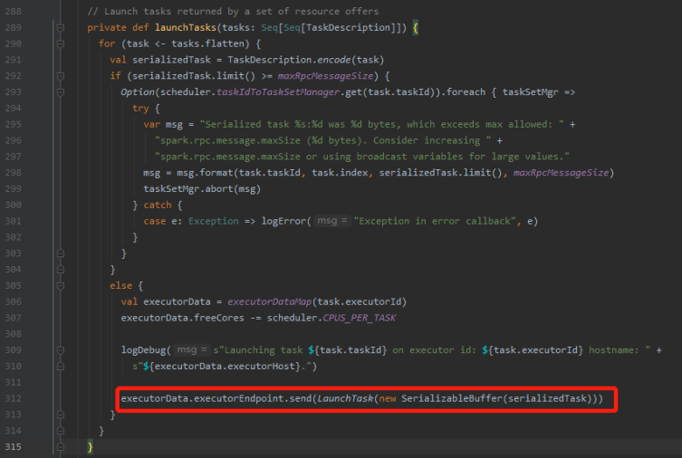 launchTasks, 发送消息给CoarseGrainedExecutorBackend创建task任务,对应的Executor准备启动Task任务