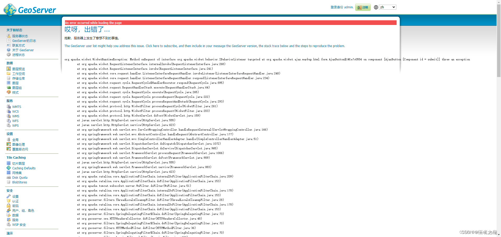 最近想试试wmts,其中有一步需要用到切片图层 但是点击页面老是报错,