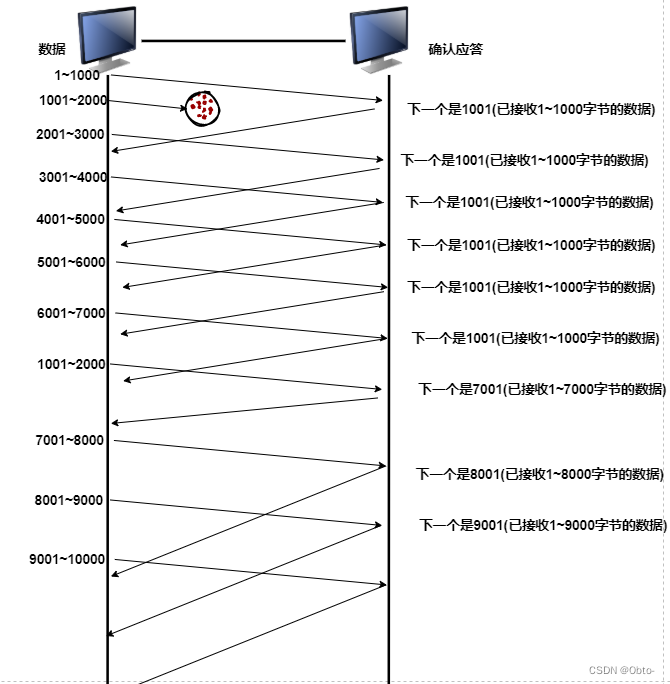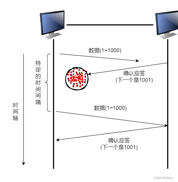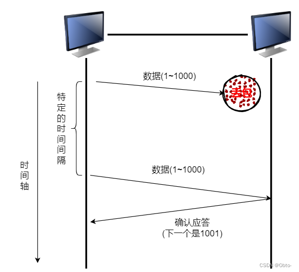 - 引出超时重传,如果隔一段时间没有应答,就重发数据
