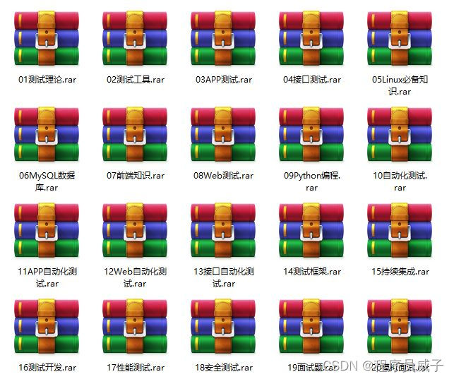 这些资料,对于【软件测试】的朋友来说应该是最全面最完整的备战仓库,这个仓库也陪伴上万个测试工程师们走过最艰难的路程,希望也能帮助到你!有需要的小伙伴可以点击下方小卡片领取