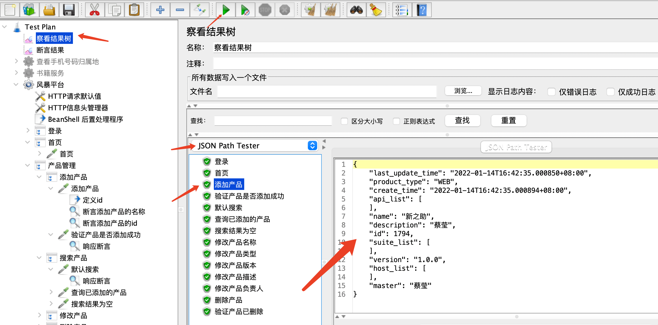 步骤四: 查看响应数据(先运行--点击察看结果树--点击登录--选择JSON path Tester)