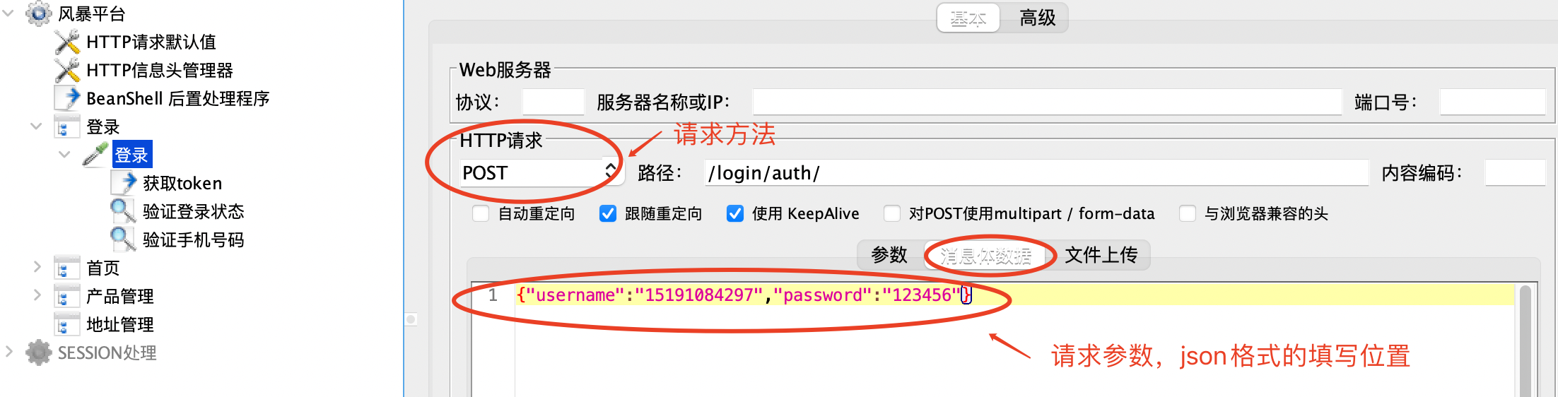 步骤三:添加登录接口的请求(先在逻辑控制器--简单控制控制器,添加一个简单控制器,然后在登录的简单控制器--添加--取样器--添加一个HTTP请求)