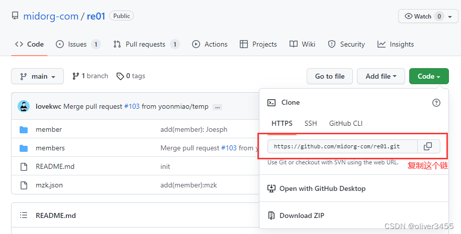 4.这时再去别人仓库,复制下别人的链接