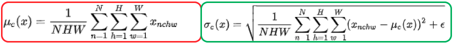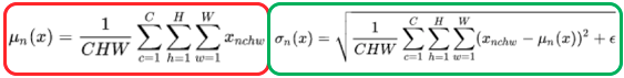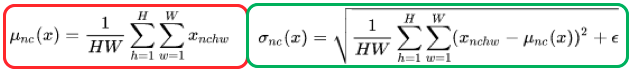 - 直观理解:IN-mean的形状为[N x C x 1 x 1], 其中IN-mean[n, c, 1, 1]表示将第 n 本书第c页的平均字,IN-var同理!
