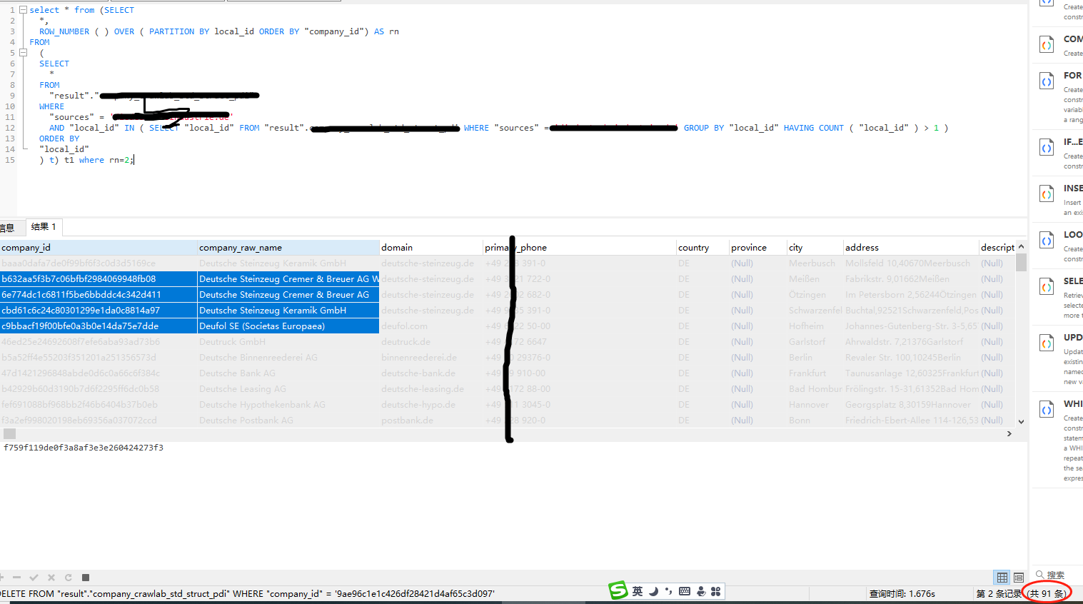 Pgsql怎样找到表中某个字段值重复的记录并删除冗余记录,只保留一条 今天发现某个黄页爬取的数据有部分重复了,原本我用的公司详情页的url进行md5来作为主键做upsert入,但后面在核验数据时发现有些详情url虽是同一间公司的,但路由上有细微差别导致写入了重复的公司数据,所以要想办法清理掉重复的公司;除了有表id外,我的表里还有一个local_id字段,用于保存页面上的内部id,下面就从这个字段入手进行;